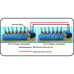 This unit is similar to the 701-2 Junction Strip with the addition of having six toggle switches.  With these added switches, one can control different lights, different rooms of lights, or different circuits within your dollhouse.  You simply wire to one of the six terminal blocks, tighten down the screws and control that light with the toggle directly behind the terminal block.  As with the Power Connection, the Junction Switch is a fused circuit.  Each toggle switch is capable of handling up to 5 amps of power at 12 volts so this Junction Switch could easily be used to switch power to six different displays.  As with the power connector you need to match the fuse size to the size of your power supply.  In other words, if you have a 2-amp power supply, you need a 2-amp fuse.